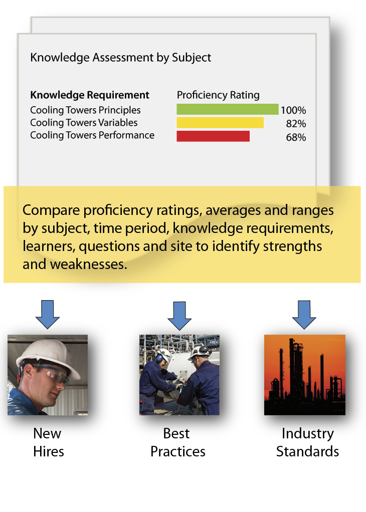Benchmark your incoming employee's knowledge levels against those at your best practice model plant, or against your current journeymen, or against a dozen other baselines–all with a simple mastery assessment of knowledge. - Best Practices Benchmarking